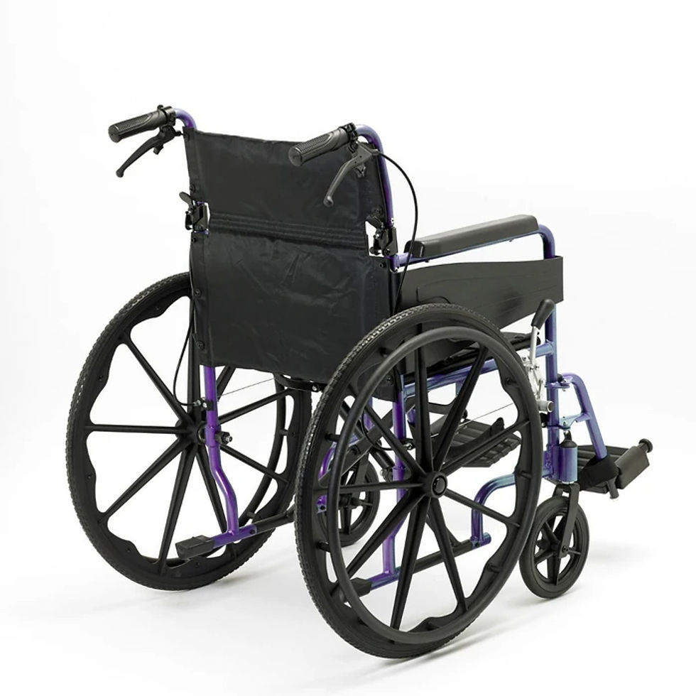 If you require something a bit more heavy duty, a wider seat width is available to accommodate the needs of a larger user. The attendant brakes with rear steppers help to stop and slow the wheelchair while managing curbs and steps during use. The chair is also available in different colours for you to have personalised for everyday use.